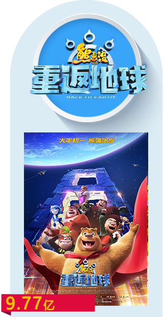 列中國動漫指數榜首位。原創出品9部《熊出沒》系列動畫電影,國內上映總票房超57億,成為
