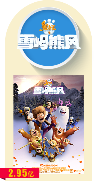 • 2015年第二部大電影《熊出沒之雪嶺熊風》登陸全國院線后,刷新了多項當時的國產票房紀錄,最終斬獲票房2.95億元。