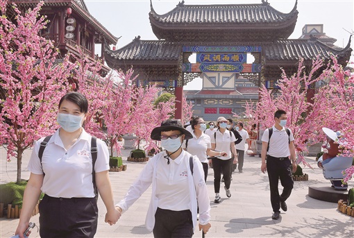 4月10日,長沙方特東方神畫園區(qū),寧鄉(xiāng)市疾病預(yù)防控制中心的醫(yī)務(wù)工作者在免費游玩。當(dāng)天,該園正式復(fù)工開園,曾經(jīng)在長沙城區(qū)抗疫一線奮戰(zhàn)的30余名“白衣天使”受邀成為首批入園游客。湖南日報全媒體記者 徐行 通訊員 周冰鑫 攝影報道