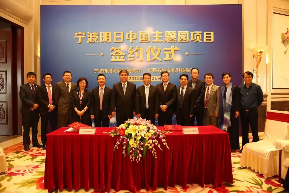 寧波市人大常委會副主任、寧波杭州灣新區黨工委書記俞雷,寧波杭州灣新區黨工委副書記、管委會副主任徐方,新區管委會副主任蔡世杰參加。華強集團股份董事局副主席李明、華強集團董事長張恒春、華強方特集團董事長戎志剛等參加簽約儀式。