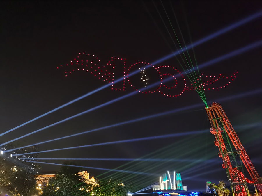 南寧方特東盟神畫舉辦了以“慶祝建黨100周年”為主題的無人機(jī)星空表演,讓游客大飽眼福。隨著音樂節(jié)奏不斷變化,無人機(jī)在星空描繪組合出“100周年”“小紅軍吹號角”等創(chuàng)意圖案。與此同時(shí),絢麗的花船搭配真人歌舞表演,在湖面上緩緩前行,璀璨的燈光點(diǎn)亮夜空,與無人機(jī)表演相映成輝,令現(xiàn)場游客發(fā)出陣陣歡呼聲、贊嘆聲,抒發(fā)對黨和祖國的誠摯熱愛。