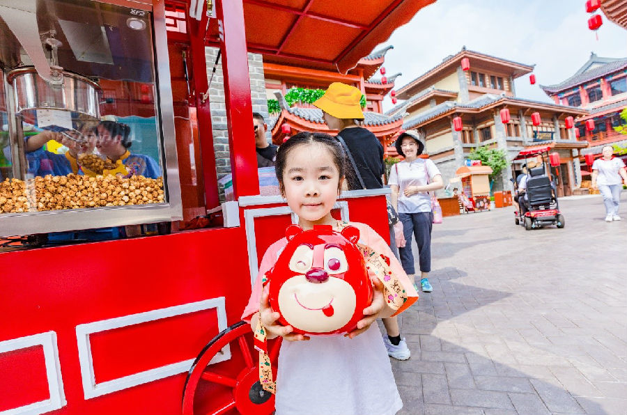 此外,園內更有多家獨具特色的文創(chuàng)周邊商店,小朋友們喜愛的“熊出沒”系列周邊、別具一格的非遺文化產品、以園內項目為設計原型的文創(chuàng)產品……各具特色、琳瑯滿目。不少游客選購了自己心儀的紀念品,滿載而歸。