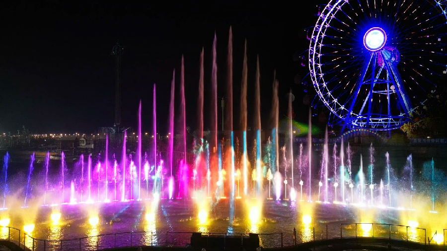 商業街區擁有室內兒童樂園《熊熊樂園》、結合大電影《熊出沒?奪寶熊兵》打造的室外迷宮《探險工廠》、3D光雕投影“光影慶典”、音樂水幕投影秀“夢境水岸”、“太空體驗館”、“港灣機場”、“港灣影城”、“洛卡樂運動工場”等20多個休閑娛樂項目,涵蓋沉浸式互動、VR體驗、極限運動、萌寵體驗、影院劇場等多種游樂形式。