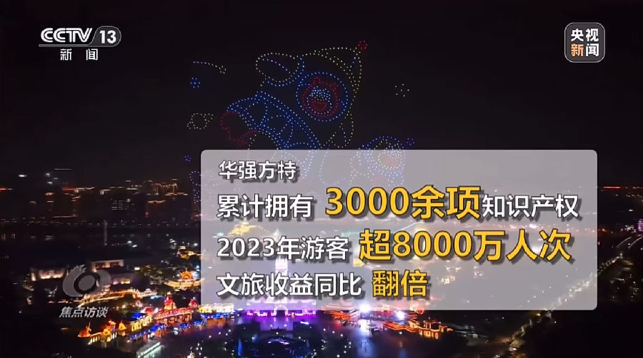 多年來(lái),華強(qiáng)方特方特作為“文化+科技”融合理念的先行者與探索者,以中國(guó)文化為內(nèi)核,以高新科技賦能文旅產(chǎn)業(yè),打造數(shù)字動(dòng)漫、特種電影、主題樂(lè)園、主題酒店、主題演藝等豐富多彩、特色鮮明的文旅精品,不斷創(chuàng)新中國(guó)文化的表現(xiàn)形式和傳播方式,為廣大游客和觀眾創(chuàng)造了一大批形式新穎、體驗(yàn)豐富、互動(dòng)性強(qiáng)、底蘊(yùn)深厚的文化旅游精品。隨著文化新業(yè)態(tài)、新產(chǎn)業(yè)、新場(chǎng)景的興起,方特不斷加大研發(fā)投入,去年以來(lái),華強(qiáng)方特全新開(kāi)拓了無(wú)人機(jī)表演、沉浸式互動(dòng)娛樂(lè)等業(yè)務(wù),無(wú)人機(jī)編隊(duì)表演規(guī)模超2500架,僅2023年首年運(yùn)營(yíng)就完成300多場(chǎng)、超30萬(wàn)架次飛行表演,成為企業(yè)全產(chǎn)業(yè)鏈業(yè)務(wù)之一。央視對(duì)此高度評(píng)價(jià)道:“文化與科技融合已經(jīng)成為文化企業(yè)做優(yōu)做強(qiáng)的發(fā)展動(dòng)力,除了帶動(dòng)流量與經(jīng)營(yíng)的雙增長(zhǎng),還激發(fā)文化企業(yè)創(chuàng)作出大量的優(yōu)秀作品,促進(jìn)了中華優(yōu)秀傳統(tǒng)文化的創(chuàng)造性轉(zhuǎn)化和創(chuàng)新性發(fā)展,產(chǎn)生了巨大的社會(huì)效益。 ”
