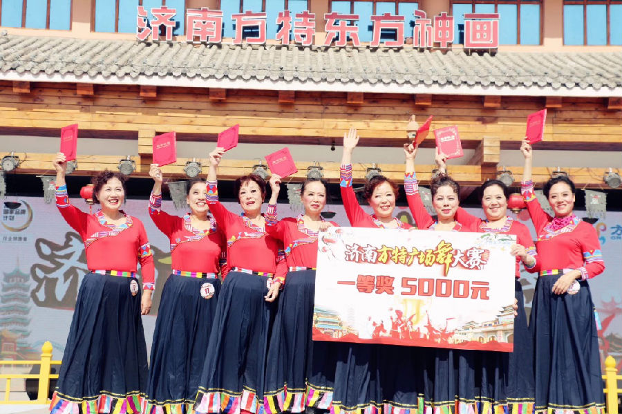 在秋意漸濃的重陽之日,濟南方特東方神畫主辦的“2018年重陽節廣場舞大賽”啟幕。近千名老年人齊聚濟南方特,共同舞動,場面十分壯觀。聲勢浩大的廣場舞活動有效傳達了尊老、愛老的主旨,倡導社會各界關注老年人精神娛樂生活,共度重陽歡樂時光。賽事結束后評選出多個獎項,獲獎的團隊現場領取了萬元現金大獎。