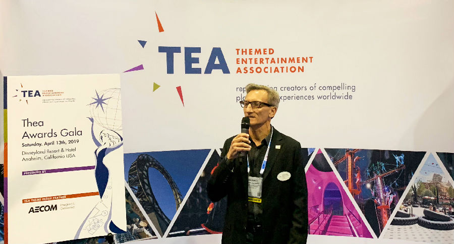主題娛樂協會(Themed Entertainment Association:TEA)是一家非營利性的國際聯盟,組建于1991年,總部位于美國加利福尼亞州,已成為全球主題娛樂行業最權威的機構,目前擁有來自全世界的超過7000名行業專家。該協會自1994年起評選和頒發TEA大獎,旨在表彰全球業界為游客創造出優秀非凡體驗的主題娛樂設計項目、游樂設施、展覽和景點等,該獎項被公認為主題娛樂行業的最高榮譽,因其在行業的重要地位和頒獎典禮的盛大隆重,素有全球主題公園行業的“奧斯卡”獎的美譽。歷屆TEA“杰出成就獎”的得主,均是從全球數百家旅游企業中脫穎而出的行業翹楚。