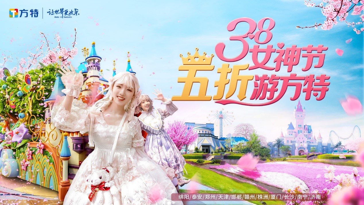 綠楊煙外曉寒輕,紅杏枝頭春意鬧。春光三月,恰逢“三八婦女節”,全國方特主題樂園為廣大女性朋友準備了一系列專屬節日驚喜,將以浪漫的滿園春色、好玩的主題項目、精彩的主題演藝、超值的門票優惠為全體女神打造節日踏春好去處。五折特惠享“女神票”特權為回饋廣大女..