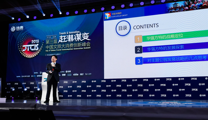 ??華強方特集團高級副總裁陳輝軍出席“第三屆中國文旅大消費創新峰會”并發表演講??6月7日,由中國旅游研究院、旅游衛視指導,執惠主辦的“2018CTCIS第三屆中國文旅大消費創新峰會”在北京召開。本次大會從文旅扶貧、文旅投資與運營創新、目的地產品創新及營銷與文..