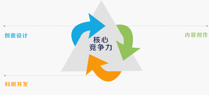 華強方特經過多年的創新發展,已經形成了以"創意設計"、"科研開發"、"內容創作"為主的核心競爭優勢,三足鼎立,相互支撐,形成了華強方特文化科技產業快速發展的核心競爭力。